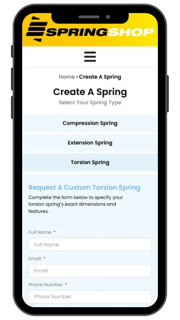 After selecting your spring type, the form will dynamically adjust to prompt you for the relevant details.